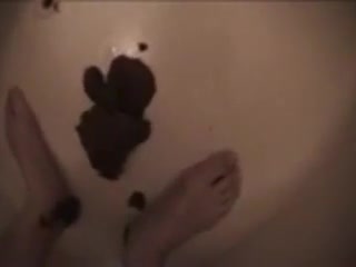Hairy japanese finished pooping in the bathtub. She starts smearing that shit on her sexy feet.