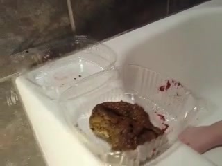 Hairy woman slowly smearing shit on her pussy while masturbating until reaching climax.