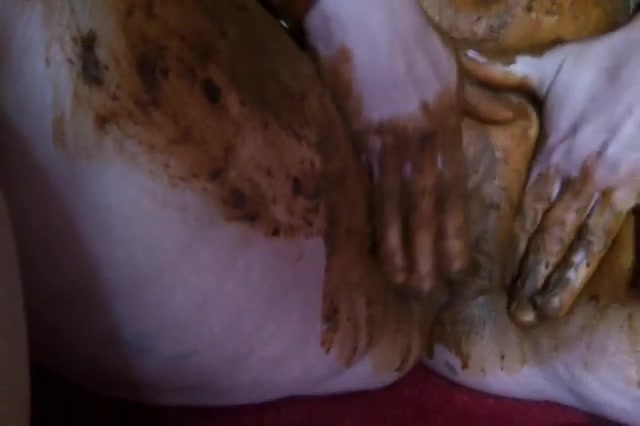 Chubby French lady smearing crap on her etnire body