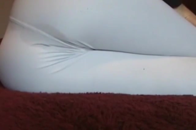 Horny slut wearing tight white yoga pants. She moves her sexy body around while farting loud in them