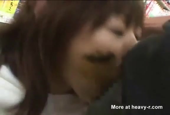 Blowjob with scat on her face inside a store