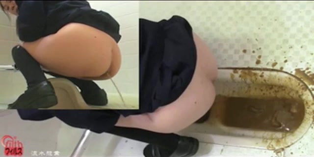 Amateur Japanese girl did a real diarheea mess in a public bathroom. She has to clean all that poop later on.