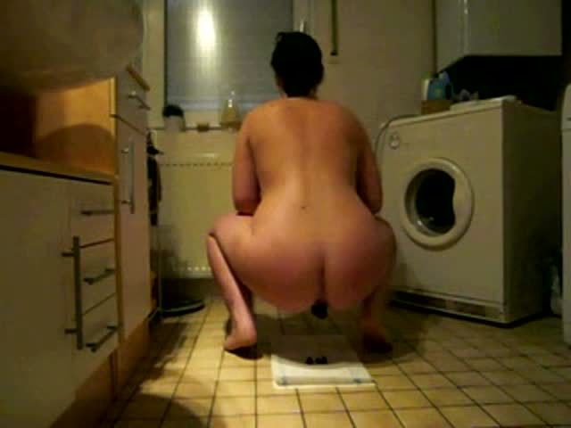 Hot brunette teen pooping on kitchen floor