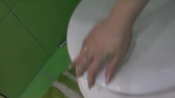 Blonde babe shitting in a white potty. She threw that poop back in the toilet, to flush it.