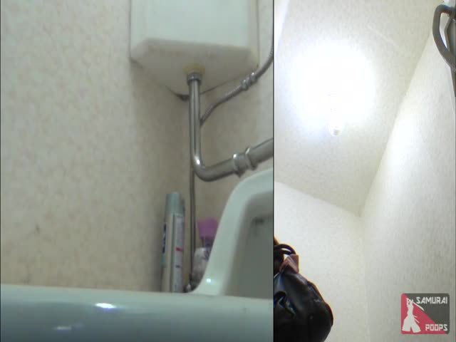 Two angles of same teen using a public bathroom to take a shit. Sexy teen shitting in public bathroom.