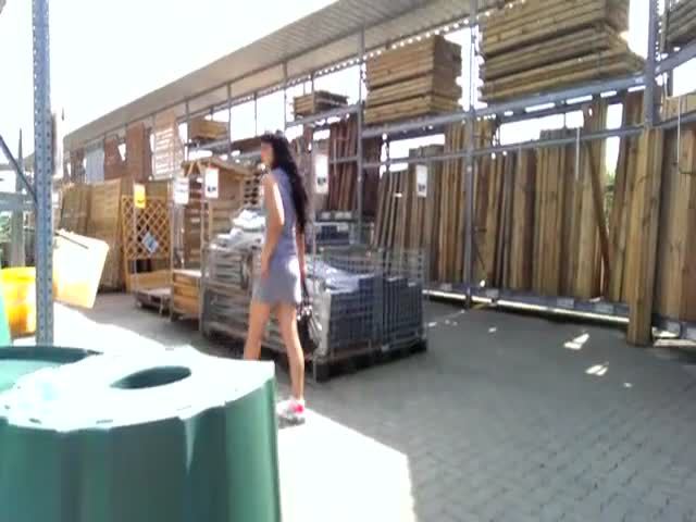 Hot brunette peeing on the ground in a hardware store. She wiped her wet pussy and left like nothing happened.