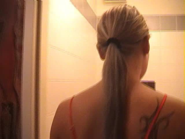 Pretty blonde girl went straight to a toilet cause she really wants to poop there.