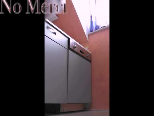 Hot brunette pooping on kitchen floor