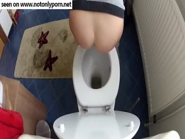Hot college teen spreading butt cheeks wide opened while she's pooping in toilet. Sexy babe wiping her dirty ass.