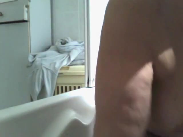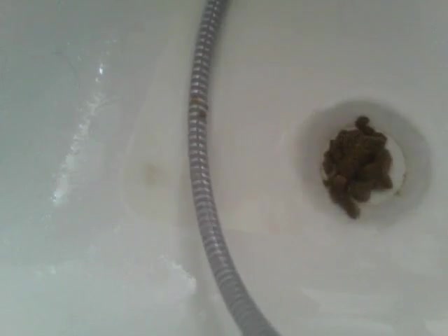 Busty naked granny records herself while she's smearing poop on her big tits and hands. She sits naked on her knees in bathtub.