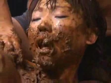 Young brunette school girl forced to eat poop by her teacher. She sits naked on her knees while he's fucking her hard from behind.