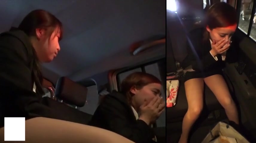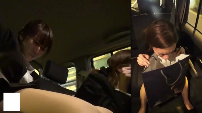 Sick girls puke and vomit in a car.