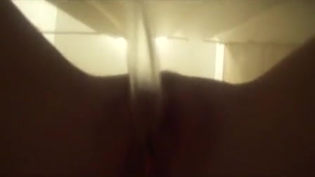 Skinny girl peeing in shower while slowly spreading her legs wide opened. She's teasing us with her shaved pussy.