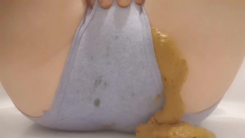 Sexy teen sitting half naked on bathroom floor. She decides to fill her grey panties with fresh poop.