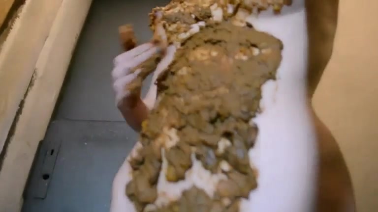 HD video of a sexy brunette teen that's smearing fresh shit on her naked body. She's wearing a sexy mask to hide her identity.