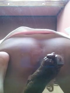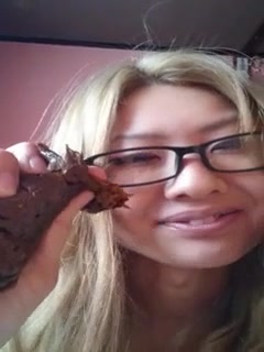 Amateur Japanese wearing sexy glasses while she's pooping on a coffee table. She's teasing us with her round ass.