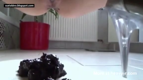 Sexy milf wearing black lingerie while she's pooping on bedroom floor. She spreads her butt cheeks wide opened.