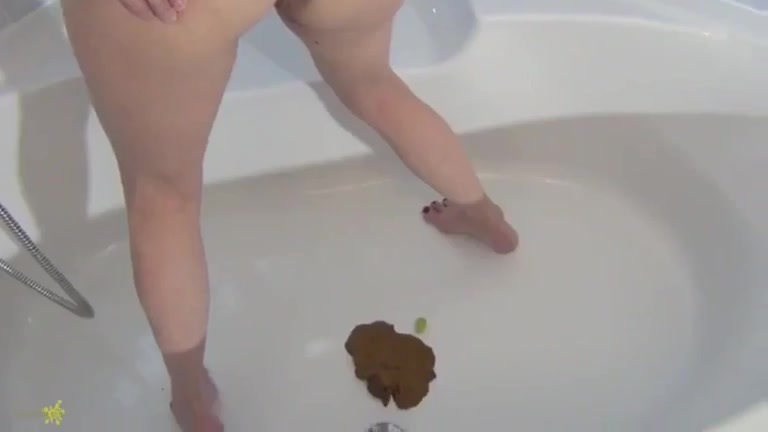 Brunette college girl smearing poop on her entire body. She sits naked in bathtub while sucking her boyfriends cock.