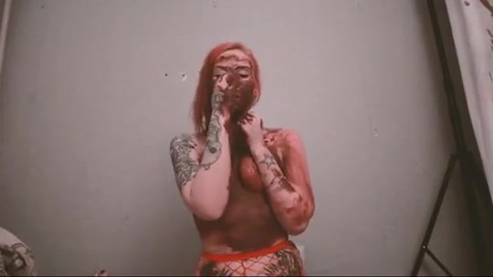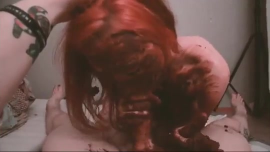 Beautiful redhead rubbing fresh shit on her big ass while she's sucking her boyfriends cock. She begged him to cum in her opened mouth.