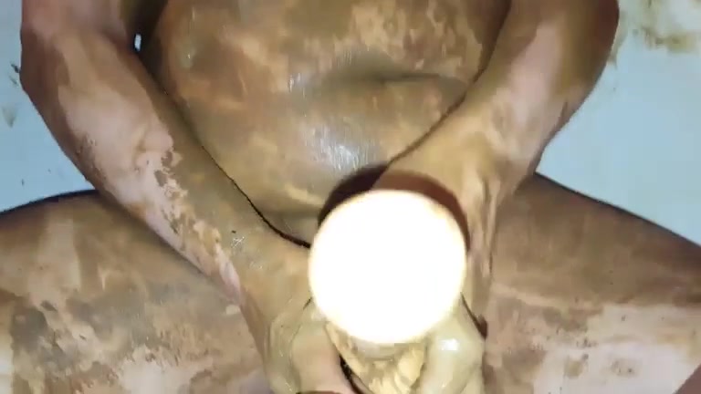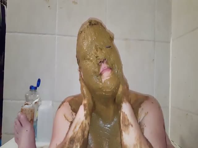 Fat mature woman rubbing shit on her naked body. She's always wanted to masturbate with poop.