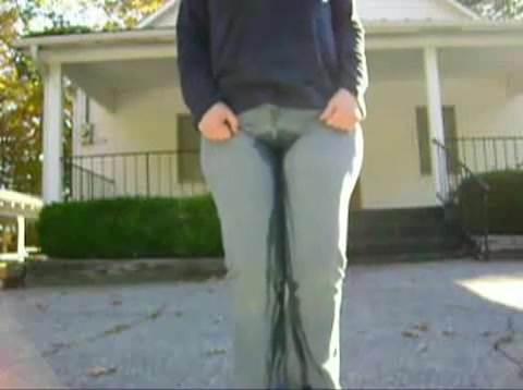 Sexy milf peeing in her pants in public