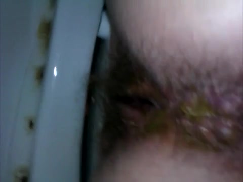 Dirty hairy wife shitting on the toilet