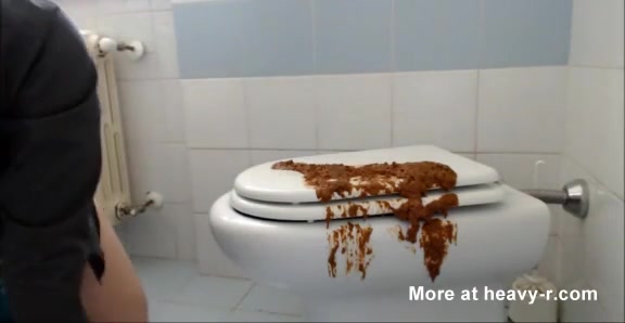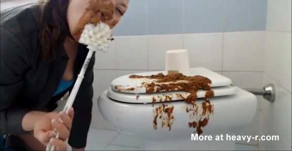 Hairy college girl did a real mess in bathroom. She starts licking poop from a white toilet brush as she's masturbating.
