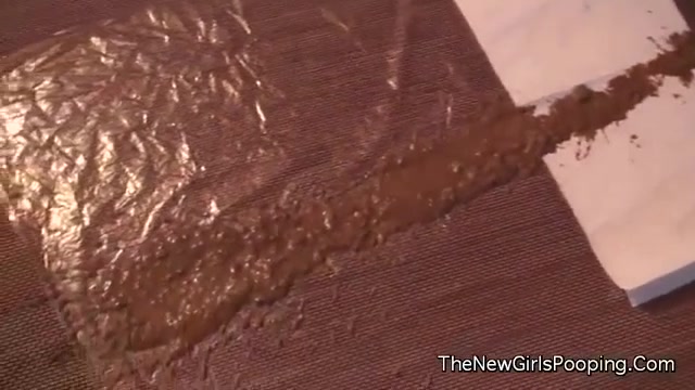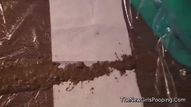 Sexy milf ripped her brown pantyhose so she can easily poop with pressure on bedroom floor.