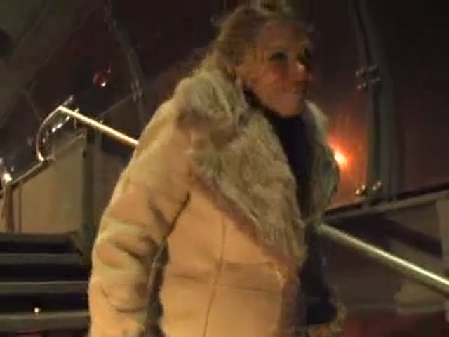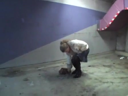 Blonde Rich girl having fun while she's peeing on the ground. She did that in a public place, to tease a random guy.