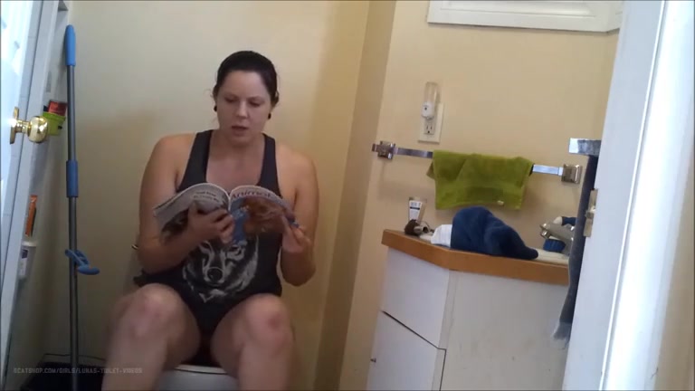 Sexy brunette babe shitting in toilet