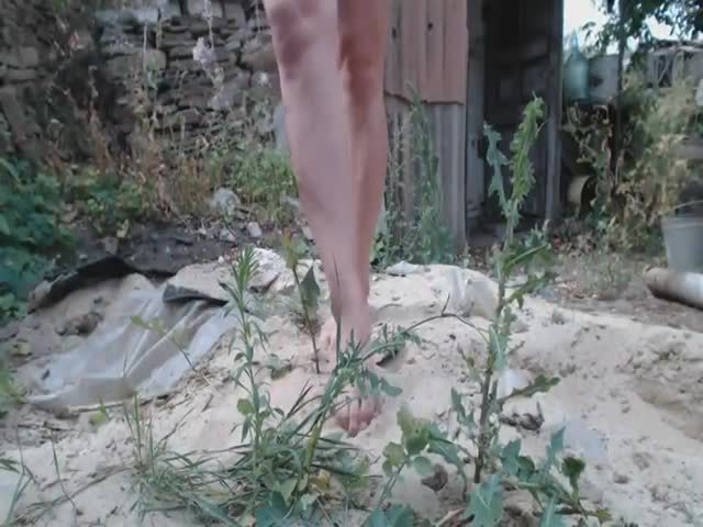 Russian milf sits naked on her back as she's smearing poop on her entire body. She's masturbating with poop outdoor.