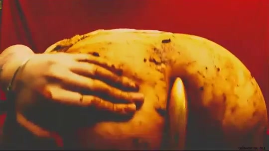Blonde babe smearing fresh shit on her entire ass and pussy. She's a pervert girl as she enjoys masturbating with scat.