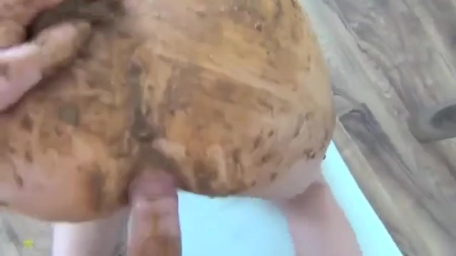 Amateur babe smearing fresh shit on her entire body while her naughty boyfriend is fucking her hard in the ass.