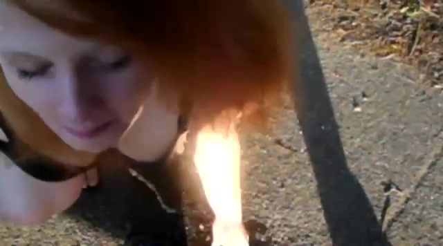 Redhead babe drinking piss