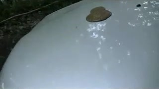 Liquid shit on hood of her car
