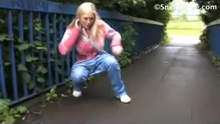 Blonde czech girl peeing outdoor