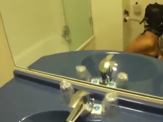 Bondaged slut wearing a black latex mask so she can't see what her boyfriend does to her. She was fucked hard in the ass and forced to suck it dry after.