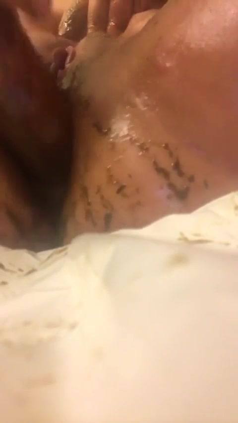 She smears poop on her shaved pussy while masturbating. She reached climax fast.