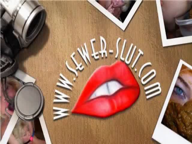 Blonde mature woman is using a metalic fork to eat her big pile of poop.