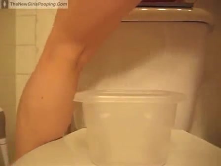 Beautiful college girl pooping a lot in a plastic lunch box. She wiped her dirty ass before leaving.