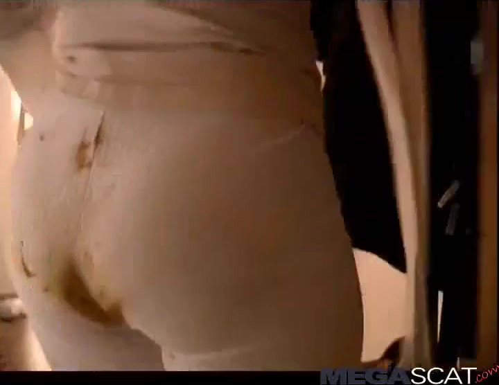 Brunette babe walking around while she's pooping in her white pants. She smears that fresh poop on her ass.