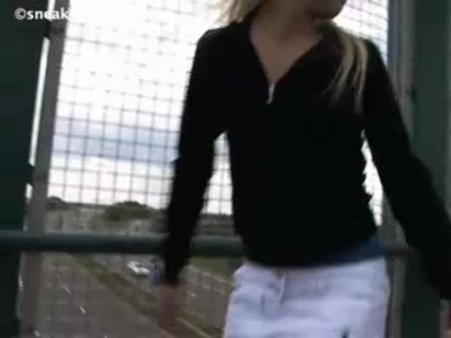 Blonde babe in mini skirt peeing