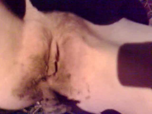 Rubbing poop on her shaved pussy