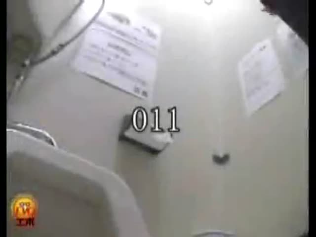 Amateur girl went to poop in a public bathroom. She dropped a huge turd there.