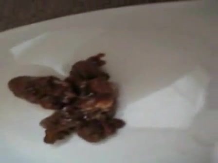 Sexy teen slowly spreads her legs wide opened while pooping on a white plate.