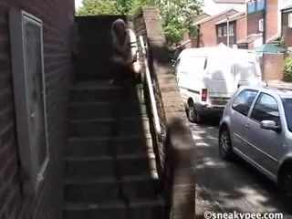 Czech babe peeing on the ground in front of her neighbours front porch. She wiped her wet pussy before leaving.