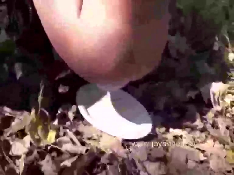 Sexy brunette babe went to poop in the middle of a big forest. She pulled her purple panties down, to tease us.
