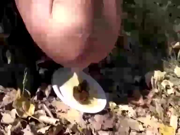 Sexy brunette pooping in the woods