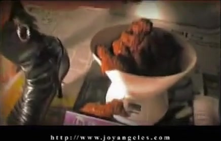 Blonde babe records her shaved pussy and ass in close up while pooping a big pile of shit in a white bowl.