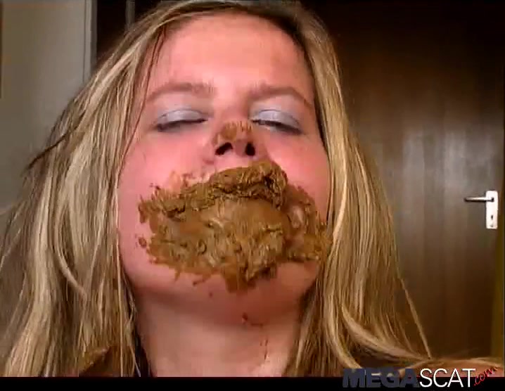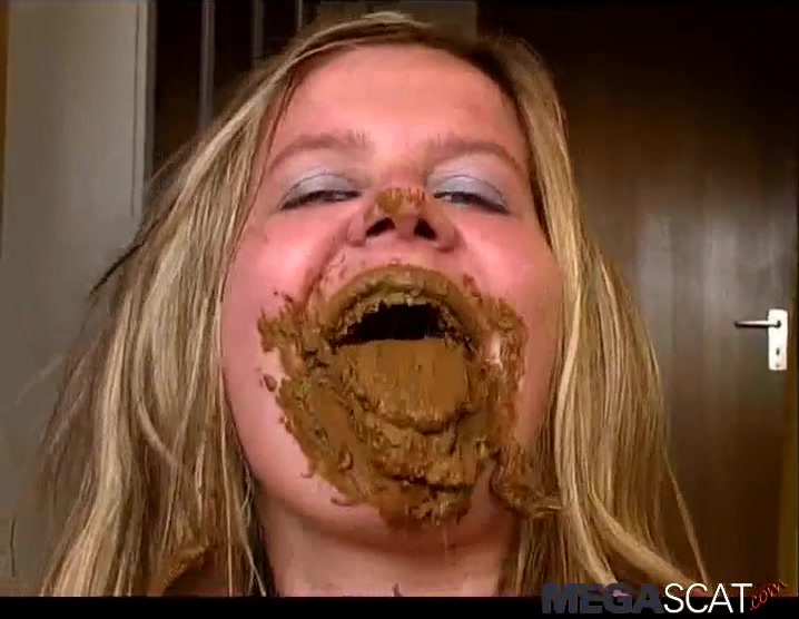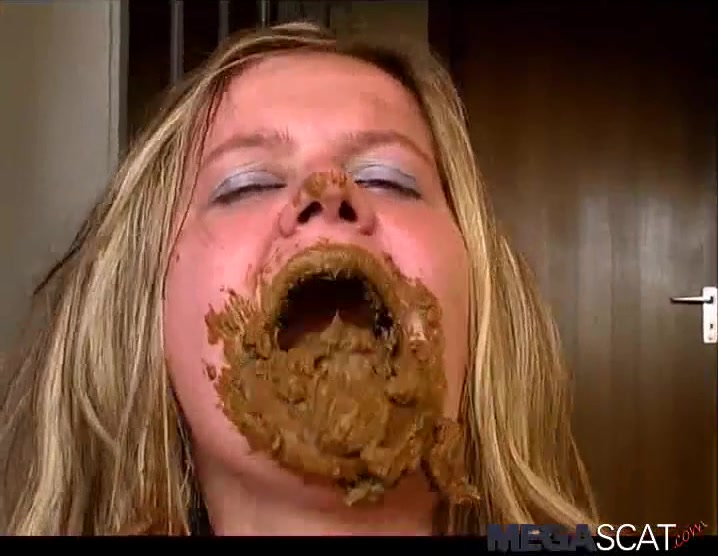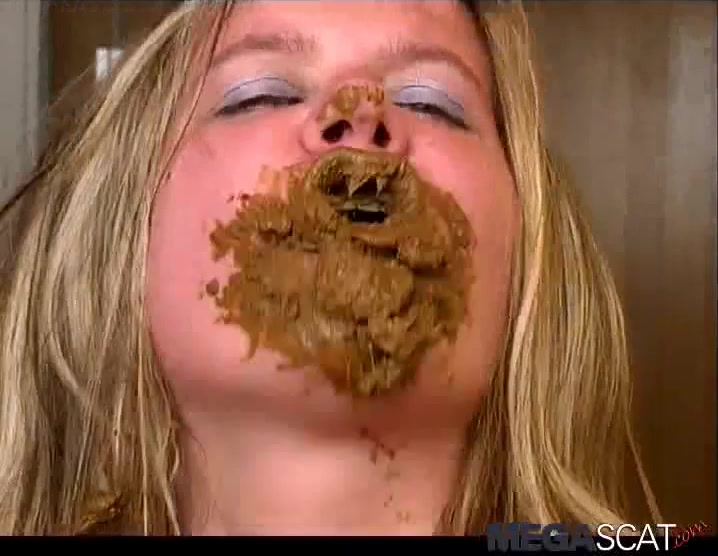 Beautiful blonde babe smears poop on her entire face. She even eats some of that fresh crap without gagging.
